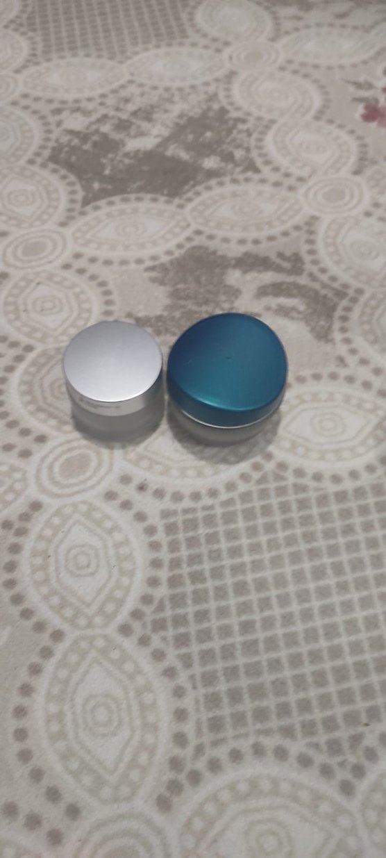 Erkekler için saç serumu ve saç maskesi seti, saçları besleyip güçlendirmeye yardımcı olur. Serumu küçük gümüş kapta, maskesi ise mavi kapaklı kavanozdadır.