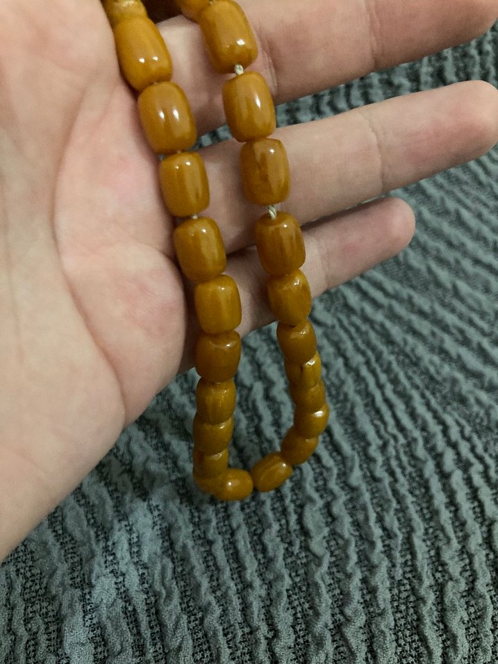 Erkekler için koyu sarı renkte, bohem tarzda tesbih. Boncuklar doğal görünümlü ve pürüzsüzdür.