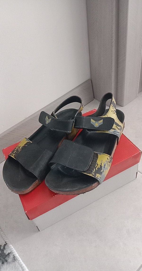 Erkek Sarı Kamuflaj Desenli Tokalı Sandalet