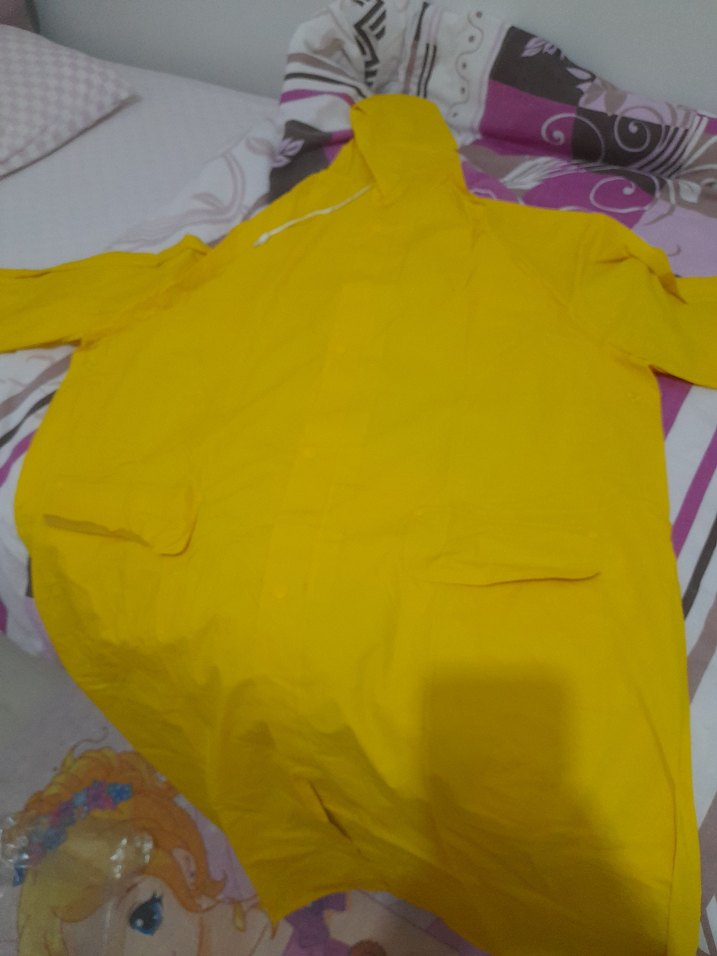 Erkek sarı yağmurluk, kapüşonlu ve uzun kolludur. Fermuarlı ve bol kesimdir. Sentetik kumaştan, düz ve renkli tasarıma sahiptir. Günlük sokak stiline uygun midi boydadır. ☔ ölçüleri 68 kol altı arası boyu 110 cm