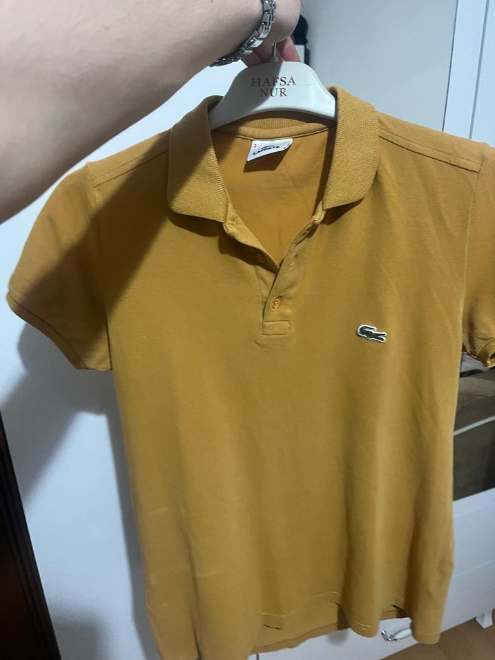 Parlak sarı renkte, kısa kollu, süet kumaştan erkek polo tişörtü. Yaka detaylı ve dar kesim, küçük işlemeli logo ile tamamlanmıştır.