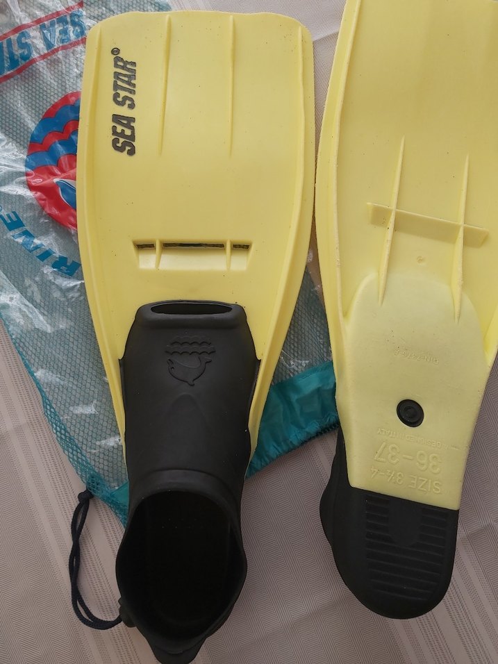 Erkek bayan için sarı renkli, kauçuk malzemeden yapılmış deniz paletleri. Velcro kapama ve baskılı desenlerle spor ve athleisure kullanıma uygun. 37.39 num ayak oluyor