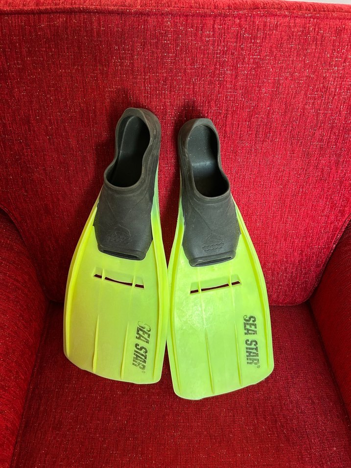 Erkekler için sarı renkli, kauçuk malzemeden yapılmış Velcro bantlı su ayakkabısı. Plaj kullanımı için tasarlanmış, canlı renklerde ve tie-dye tarzında. SEASTAR markalı. ️35 numara
