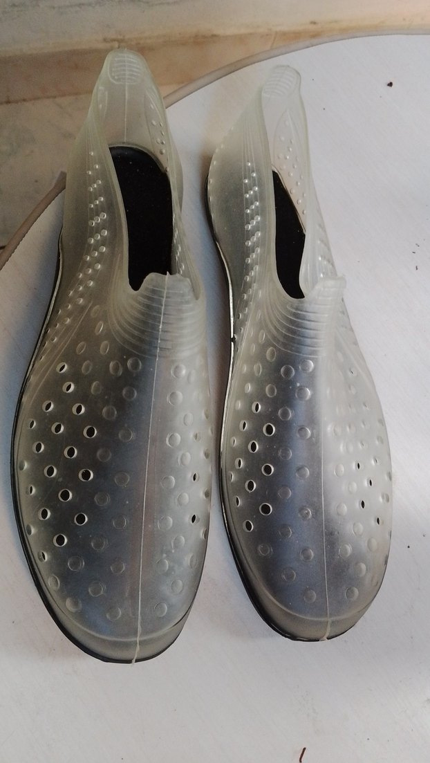 Şeffaf gri kauçuk erkek su ayakkabısı, minimalist ve çağdaş tasarımda. Günlük kullanım için uygun, desensiz ve şık.