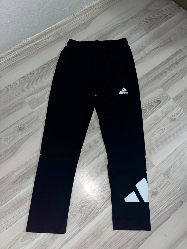 Erkek siyah Adidas eşofman altı, rahatlık için lastikli bel ve normal kesime sahiptir. Yumuşak ve sıcak kumaştan üretilmiş, spor ve günlük kullanıma uygundur.