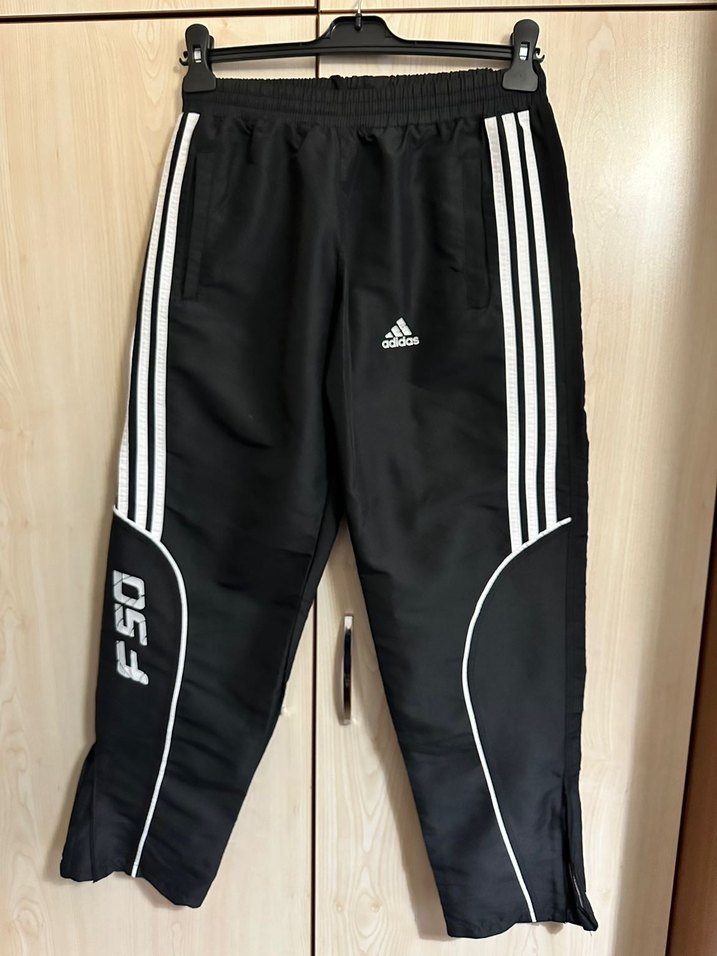 Siyah Adidas eşofman altı, beyaz şeritler ve cırt cırt detayları ile sokak stilinde, yumuşak ve sıcak kumaştan üretilmiştir.
