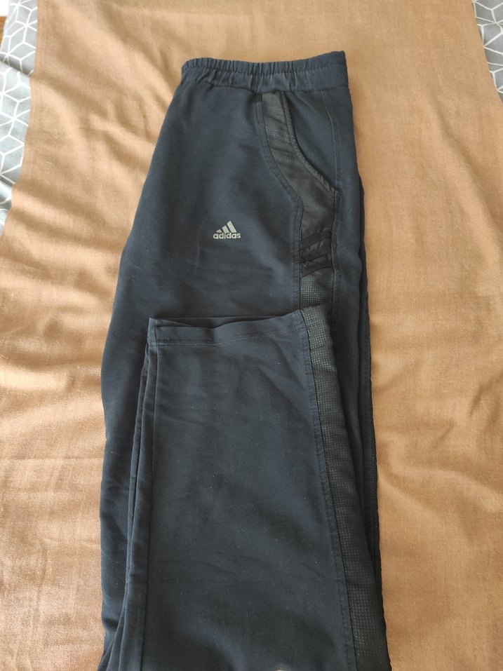 Erkekler için siyah Adidas eşofman altı, bol kesim ve fermuarlı ceplerle, sentetik kumaştan rahat sokak stili için.