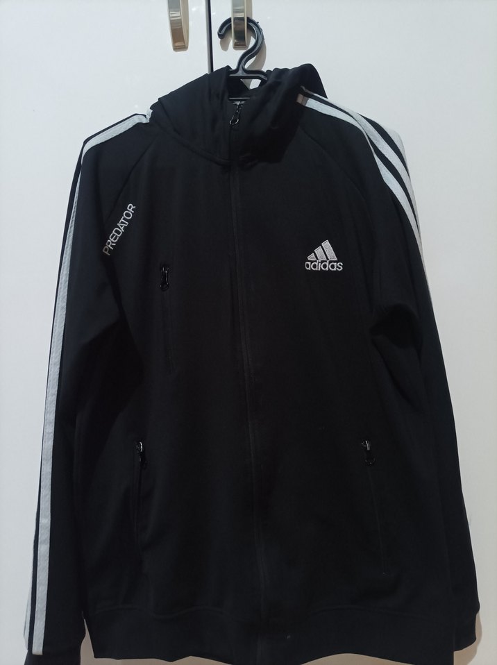 Erkek Siyah Adidas Kapüşonlu Ceket 3 cepli