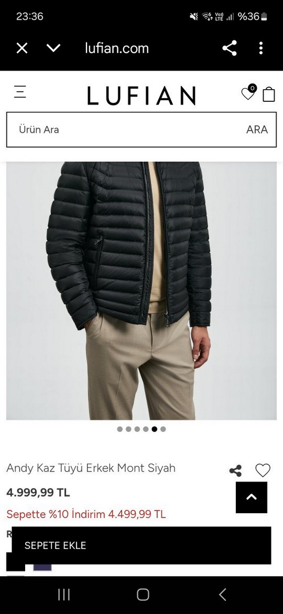 Erkekler için siyah renkte, normal boyda ve regular fit kesime sahip Andy Kaz tüyü mont. Crew neck ve uzun kollu, fermuarlı kapama özelliği vardır. Günlük kullanıma uygundur.