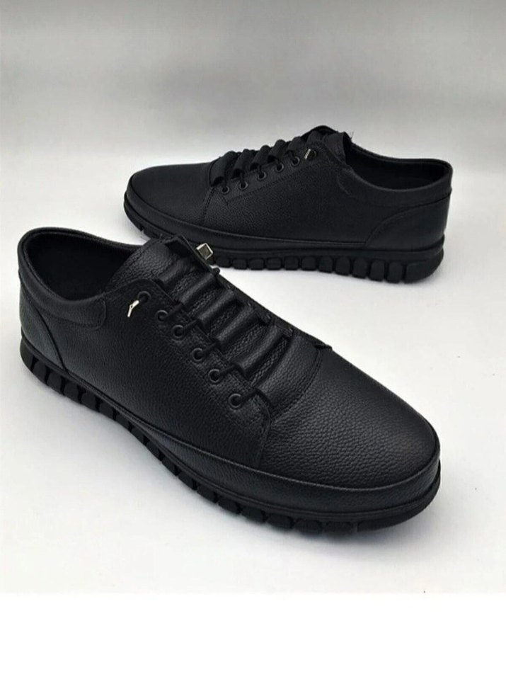 Erkekler için siyah, bağcıklı ve desen içermeyen kauçuk tabanlı günlük spor ayakkabılar, sokak stiline uygun ve günlük kullanıma ideal. elimde 2 adet var