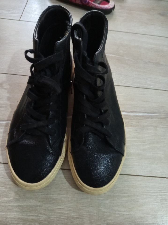 Bağcıklı, siyah renkli erkek spor ayakkabısı, kauçuk malzemeden yapılmış, günlük kullanıma ve sokak stiline uygun.