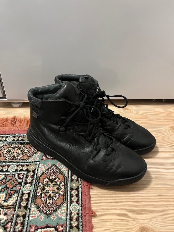 Erkekler için siyah bağcıklı botlar, kauçuk malzemeden üretilmiş, günlük rahat ve şık athleisure tarzı için uygundur.