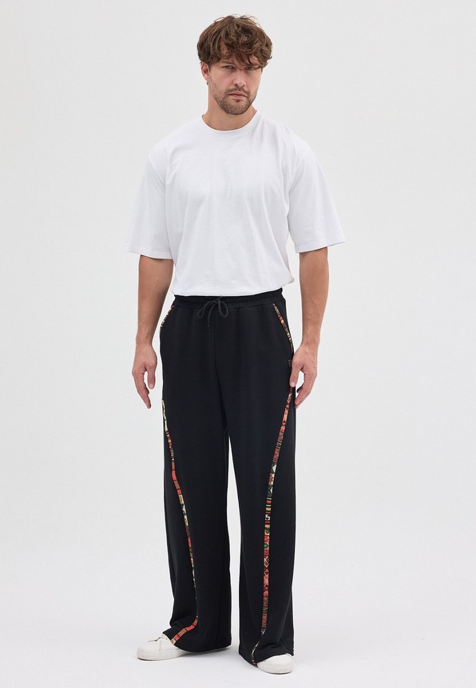 Erkekler için tasarlanmış, bağcıklı ve bağcık detaylı, rahat tekstil kumaştan yapılmış salaş kesim pantolon.