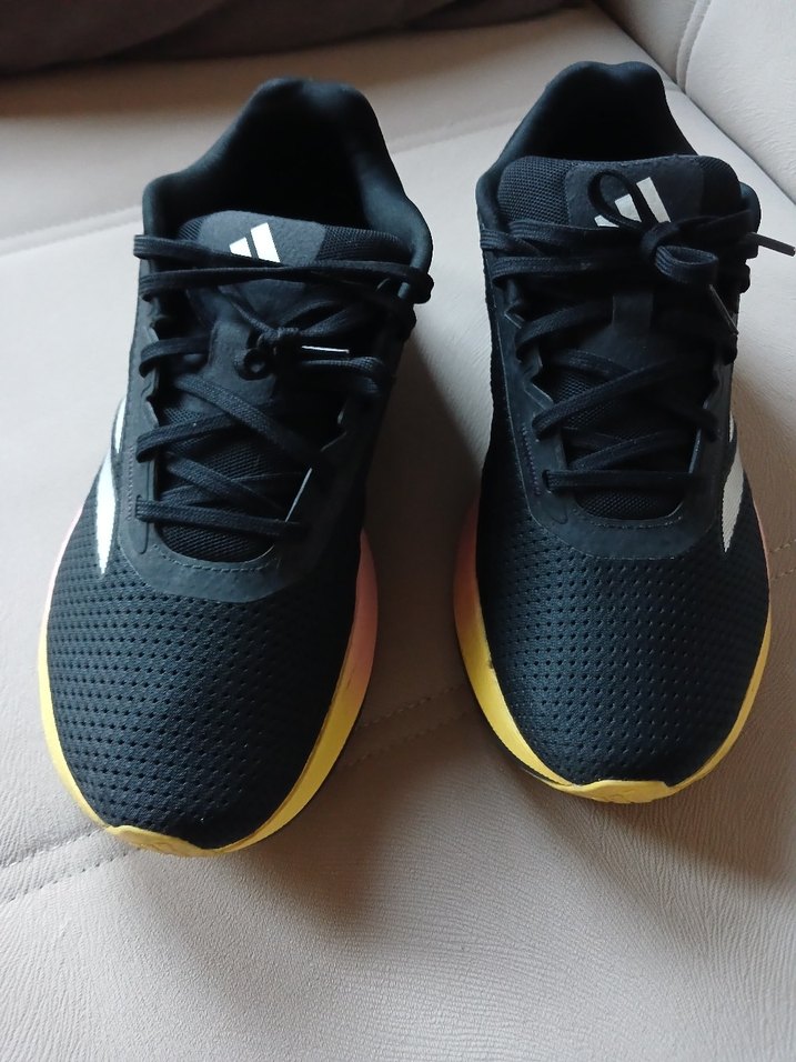 Erkekler için siyah bağcıklı, nefes alabilir üst yüzeye ve dayanıklı sarı kauçuk tabana sahip spor ayakkabılar.
