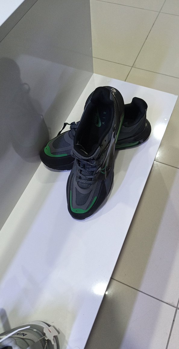 Erkekler için bağcıklı, siyah ve koyu yeşil renkli spor ayakkabılar. Kauçuk tabanlı, spor ve sokak stili için uygundur.