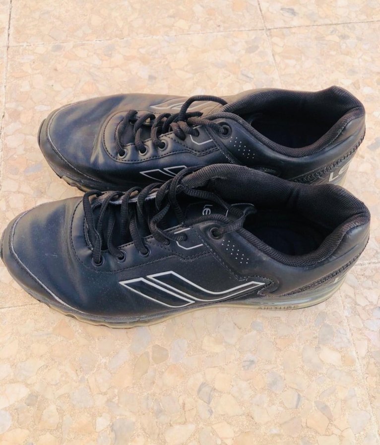 Bağcıklı, siyah erkek spor ayakkabısı, kauçuk tabanlı ve sade karanlık tasarımlı, spor ve sokak tarzına uygun. ürün kusuru yoktur