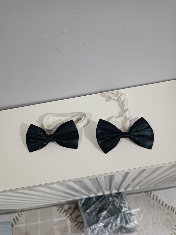 Siyah bağlamalı papyonlar, hafif bağlamalı desenle minimalist goth tarzında. Moda öncüsü için uygun.