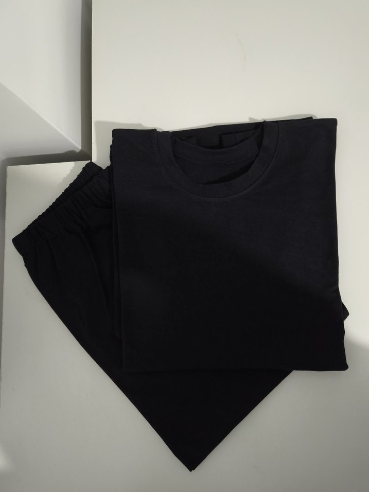 Erkek siyah pijama takımı, yuvarlak yaka ve uzun kollu, rahat kesimiyle konforlu ve sade bir stil sunar. kaliteli pamuklu kumaştır. L xl uyumlu. kendi üretimimizdir.