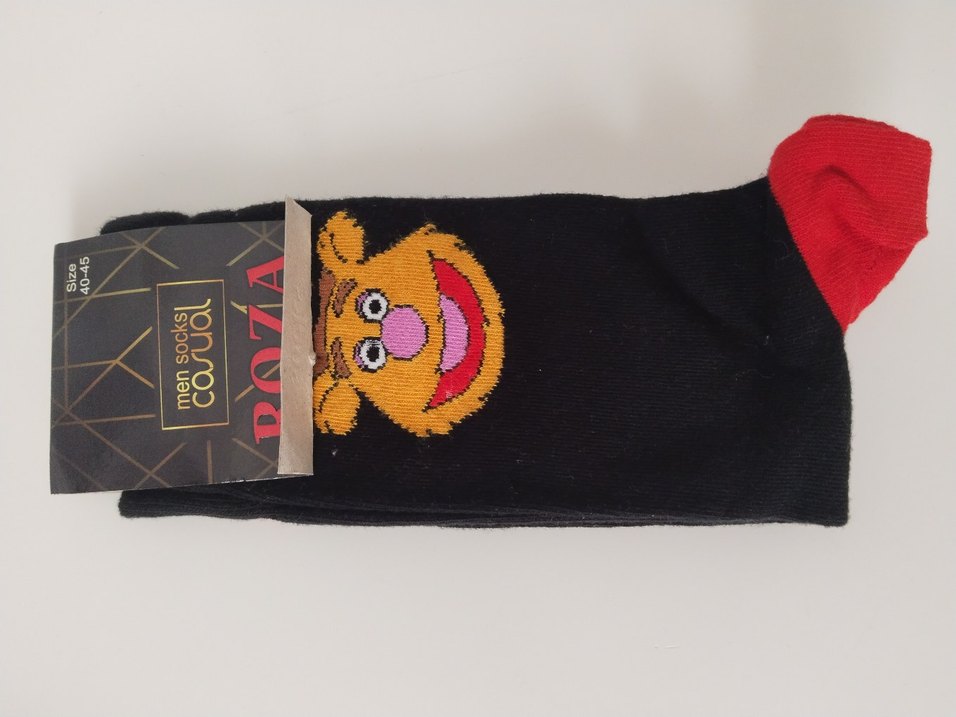 Erkekler için siyah zemin üzerine renkli ayı yüzü baskılı, yumuşak dokulu rahat çoraplar.