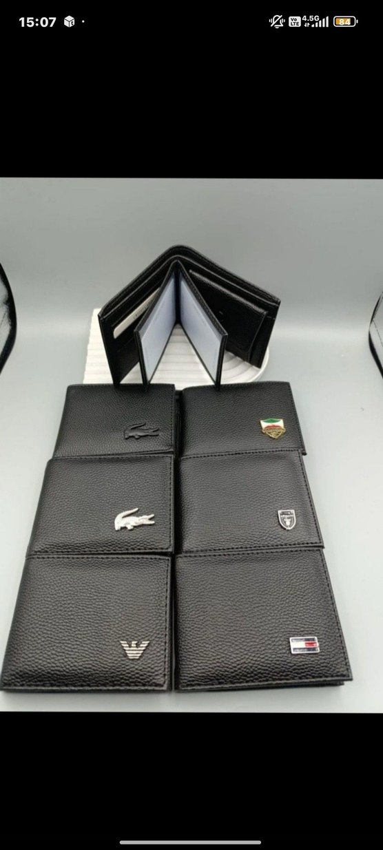 Kart ve nakit için bölmeli, baskılı logolu siyah erkek cüzdanlar. Klasik ve şık, hafif sokak stili dokunuşlu.