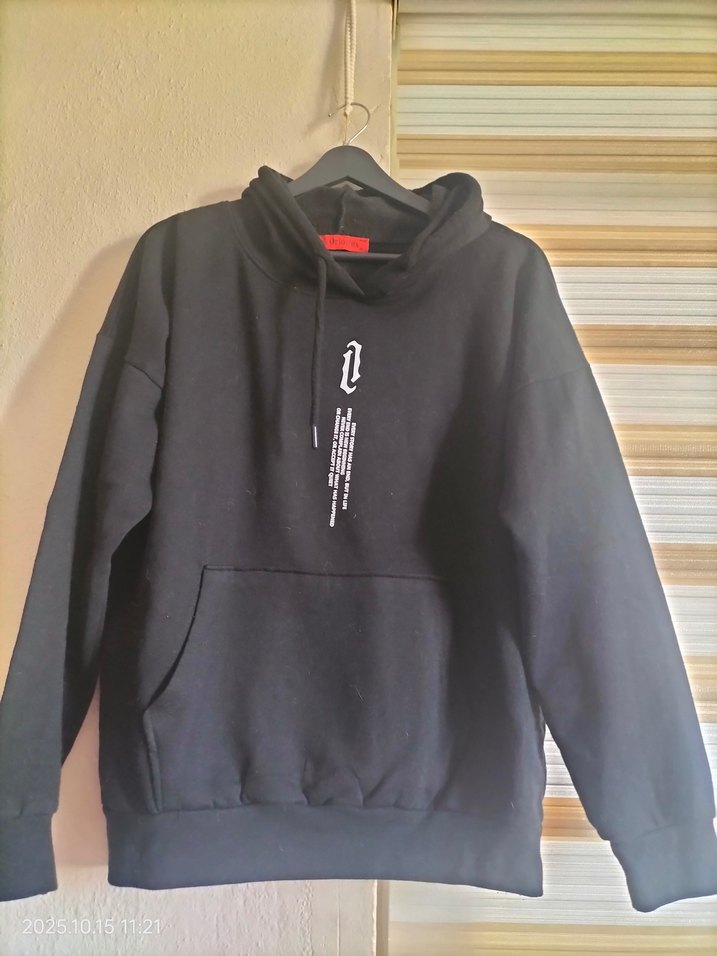 Siyah baskılı, bol kesim, uzun kollu ve ön cep detaylı sweatshirt. Yumuşak ve sıcak kumaştan üretilmiştir, günlük kullanım için uygundur.