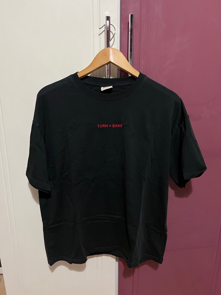 Pamuklu kumaştan, kısa kollu, yuvarlak yaka, bol kesim siyah kız çocuk tişörtü. "TURN+BAKE" baskılı, rahat sokak stili için uygundur. Antrasit rengi bir defa kullanıldı