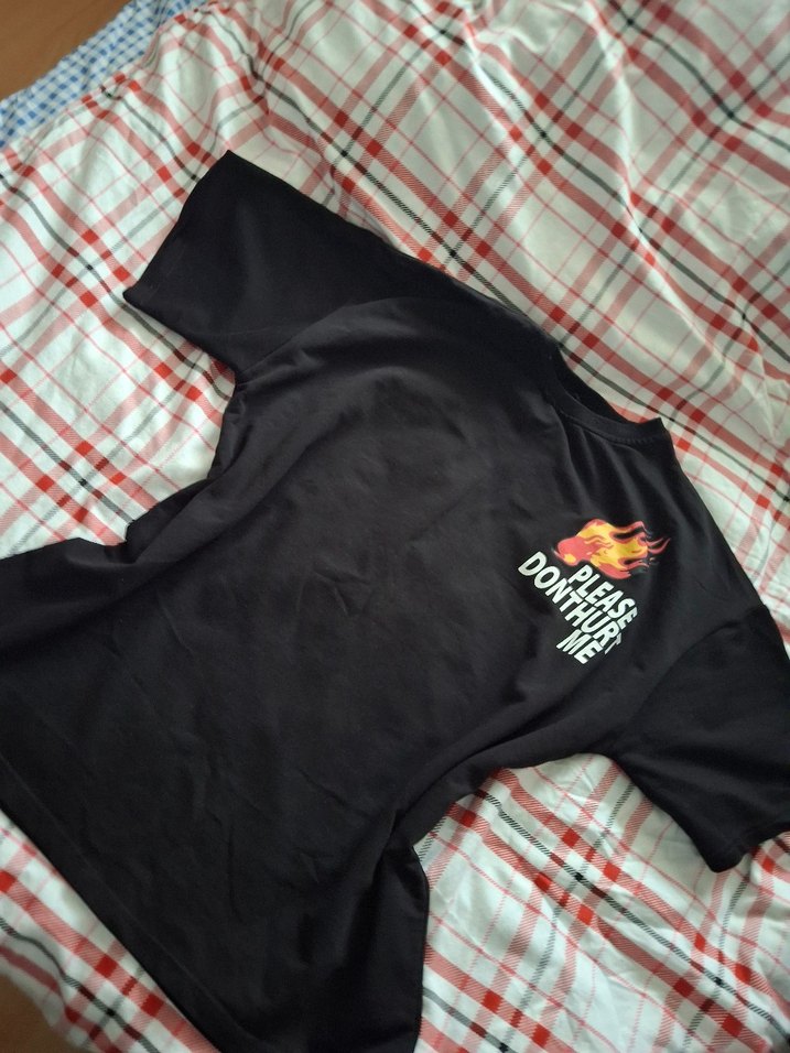 Siyah, baskılı, kısa kollu erkek tişörtü, yuvarlak yaka ve bol kesim. Günlük kullanım için sentetik kumaştan üretilmiştir.