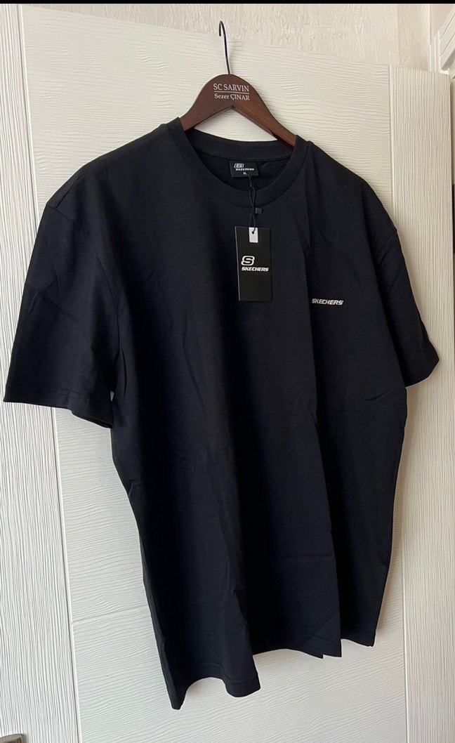 Erkek Siyah Baskılı Kısa Kollu Tişört SKECHERS orijinal