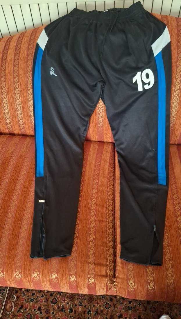 Erkekler için uzun, dar kesim siyah baskılı spor pantolon. Fermuarlı detaylar ve 19 baskısı bulunur. Sentetik kumaştan, spor ve sokak tarzı için uygundur. ♂️