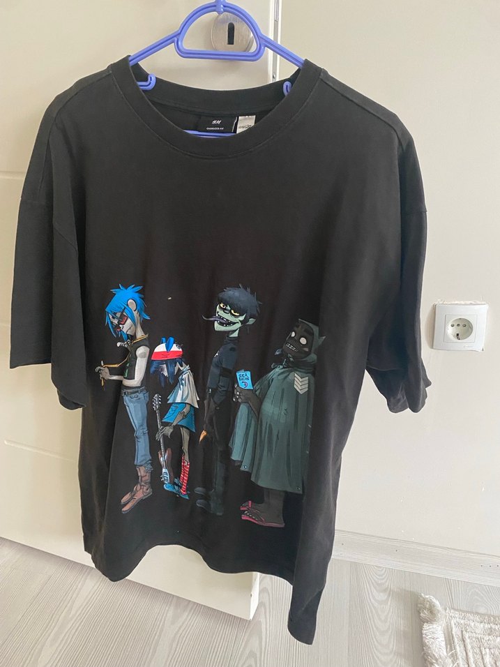 Siyah pamuklu erkek tişörtü, bol kesim ve kısa kolludur. Üzerinde rock punk tarzı baskılı desen ve bisiklet yaka bulunmaktadır.