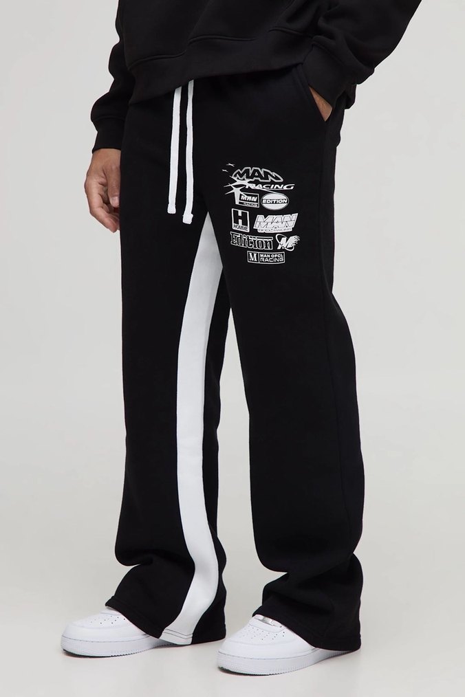 Erkek Siyah Baskılı Rahat Kesim Eşofman