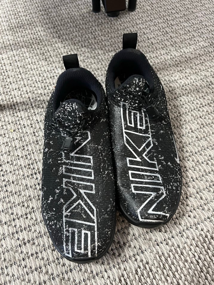 Siyah baskılı desenli, lastik tabanlı ve cırt cırtlı erkek spor ayakkabısı, rock punk tarzına uygun.