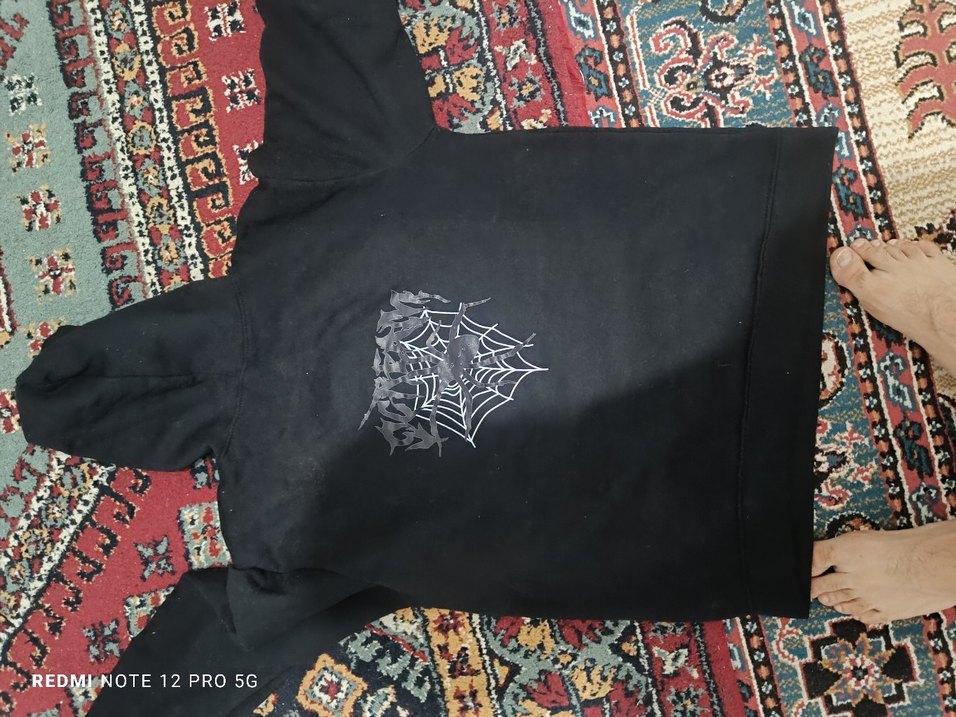 Siyah renk, baskılı örümcek ağı ve yarasa desenli, , yuvarlak yaka, sweatshirt