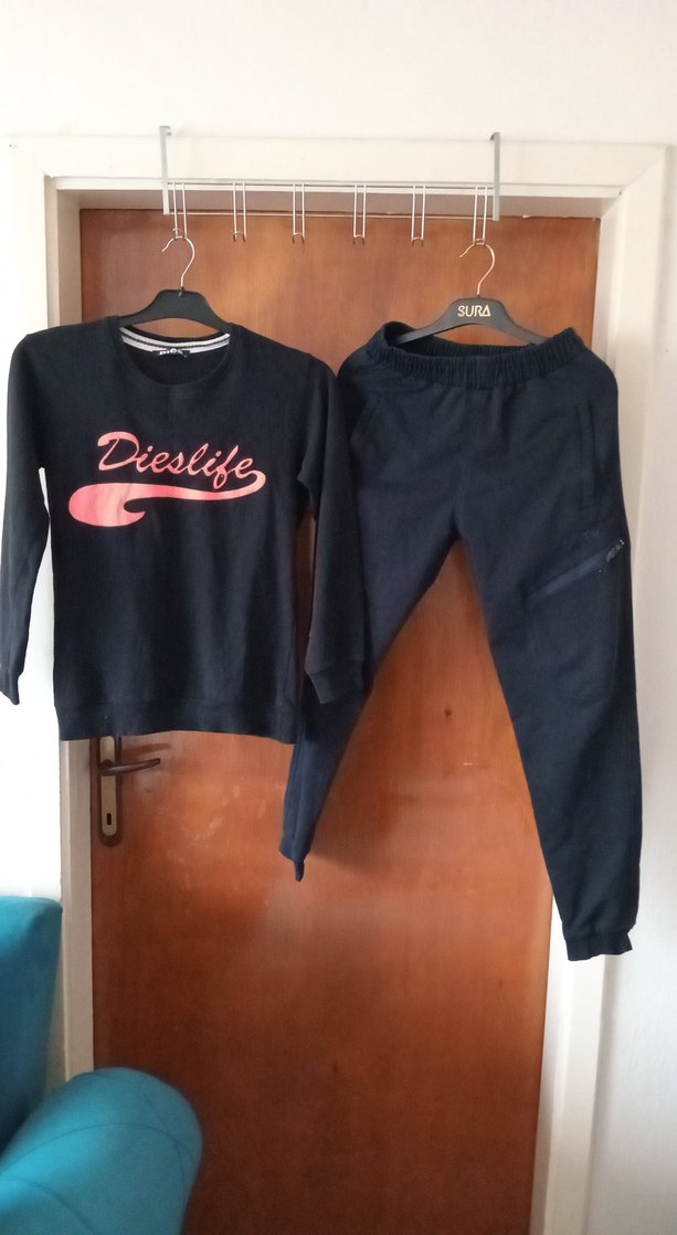 Erkekler için siyah baskılı sweatshirt ve fermuarlı eşofman takımı, yumuşak ve sıcak kumaştan, bol kesim ve bisiklet yaka ile rahat sokak stili sunar.