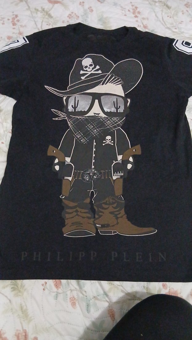 Erkek çocuklar için siyah deri görünümlü, biker temalı baskılı tişört. Kısa kollu, bisiklet yaka ve kemerli detaylıdır. Marka: PHILIPP PLEIN. ️