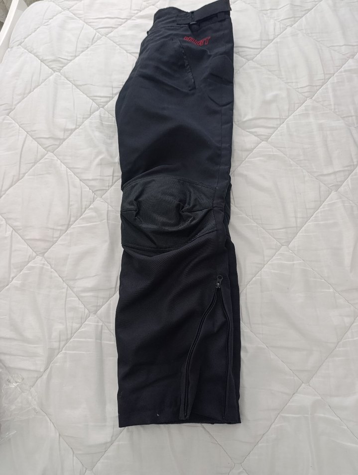 Erkek için siyah, dar kesim biker pantolon. Sentetik kumaştan üretilmiş, fermuarlı detaylara sahip midi boy. Dürt marka motor pantolon