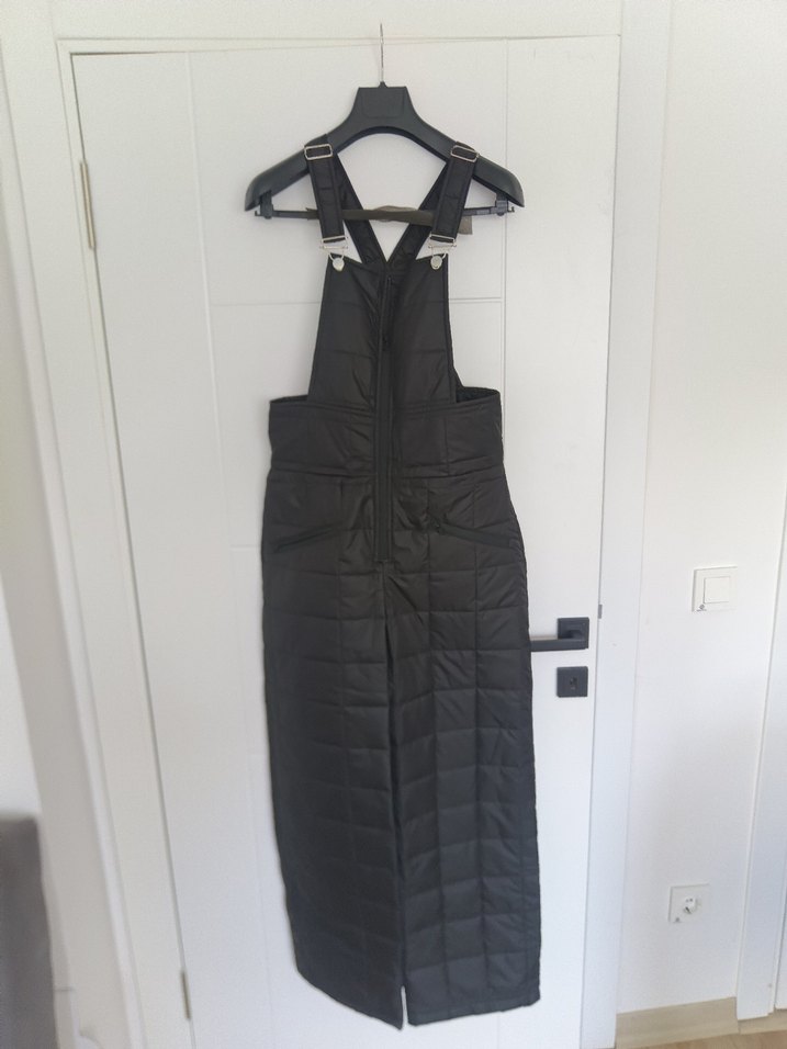 Erkekler için bel kemerli, uzun paçalı, siyah renkte, biker tarzında, sentetik kumaştan üretilmiş kayak pantolonu. Günlük kullanıma uygun athleisure stilinde.