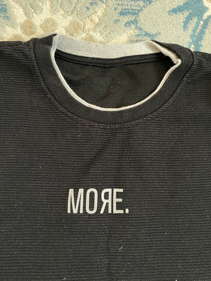 Erkek siyah bisiklet yaka sweatshirt, uzun kollu ve bol kesimdir. Örme kumaştan yapılmış ve önünde "MOAE." baskısı vardır. Günlük kullanım için uygundur. Defacto Marka