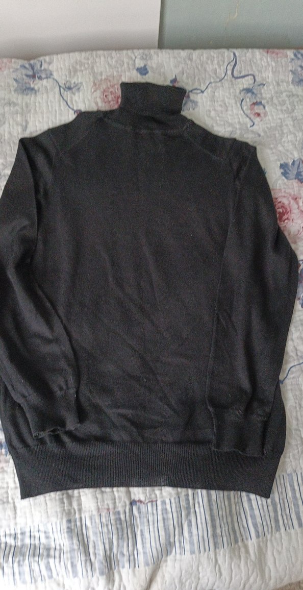 Siyah renkli, boğazlı ve uzun kollu, triko dokulu ince kesim kazak. Yumuşak ve sıcak kumaştan, günlük sokak stili için uygundur.