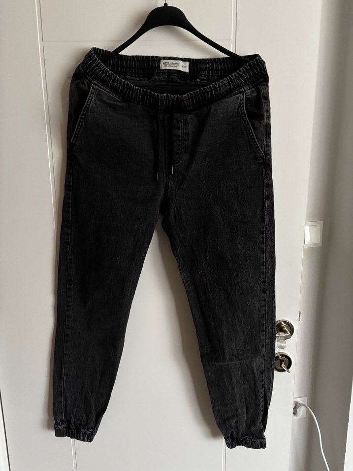 Erkekler için siyah kot pantolon, bol kesim ve kemerli bel ile rahat bir sokak stili sunar. Günlük kullanım için uygundur.