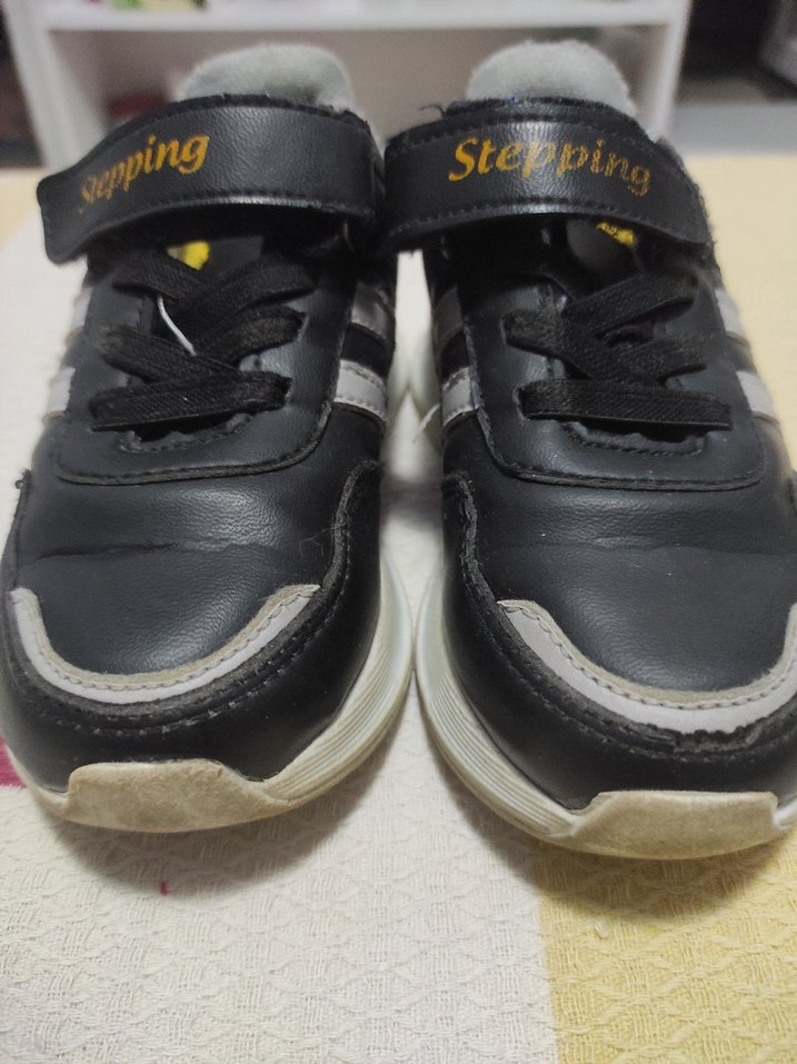 Erkek Siyah Çizgili Cırt Cırtlı Spor Ayakkabı 20 numara