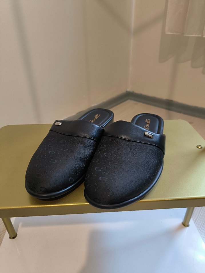 Minimalist tasarımlı siyah erkek ev terliği, tokalı ve rahat kauçuk tabanlı. Günlük kullanım için klasik sokak stiliyle uyumlu. hiç kullanılmadı ceyo terlik