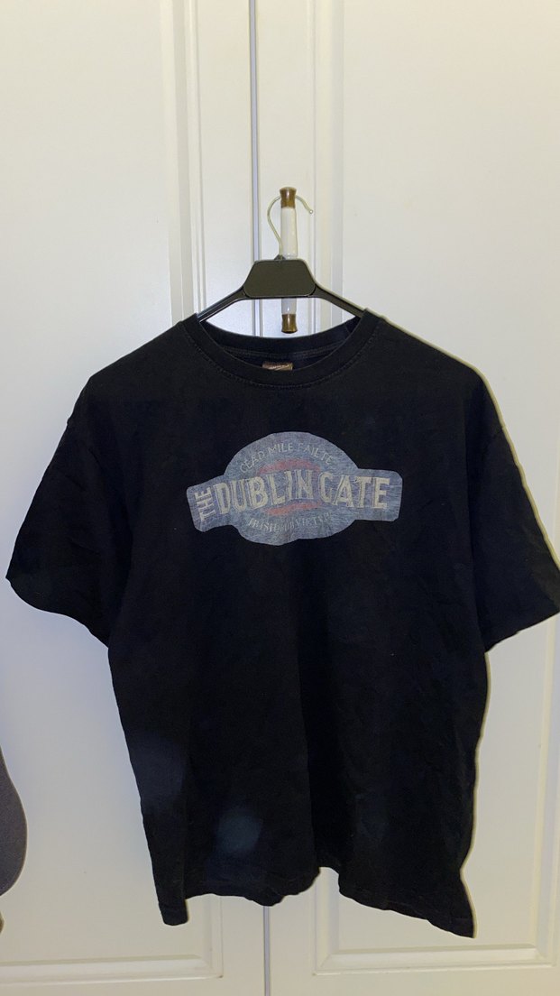 Siyah renkli, denim kumaştan, baskılı ve tokalı detaylı, salaş kesim erkek tişört. Yuvarlak yaka ve kısa kolludur.