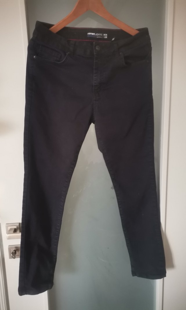 Erkekler için siyah denimden yapılmış, normal boy ve regular fit kesime sahip . 34/30 En 38 cm boy 98 cm dır SON FIYATTIR