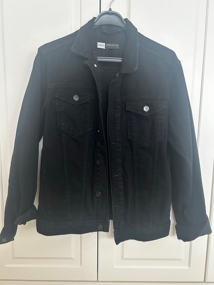 Düğmeli ön kısmı, notched lapel yaka ve uzun kollu, siyah renkli, bol kesim kadın denim cekettir. Midi boyda ve günlük kullanıma uygundur.