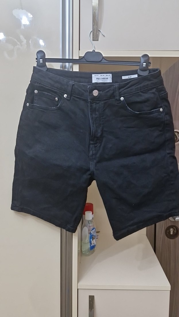 Erkek Siyah Denim Mini Şort slim 42 beden