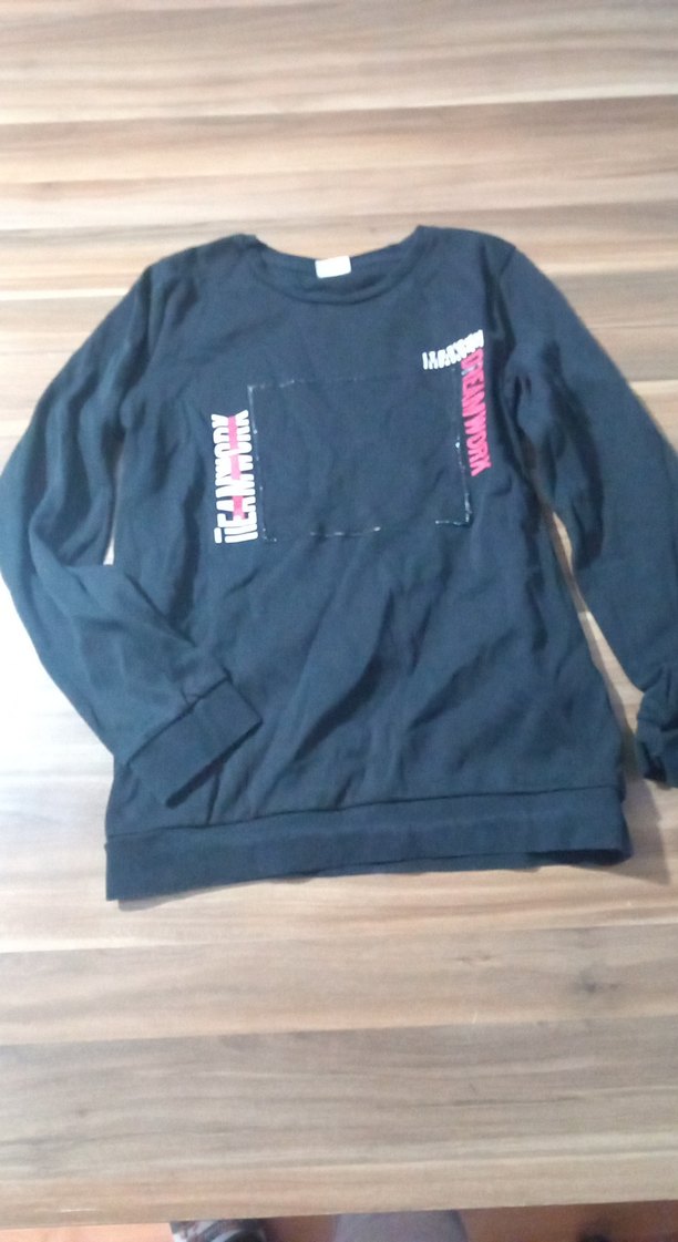 Erkek çocuklar için uzun kollu, bisiklet yaka siyah denim sweatshirt. Baskılı desenleri ve bol kesimiyle rahat ve şık bir sokak stili sunar.