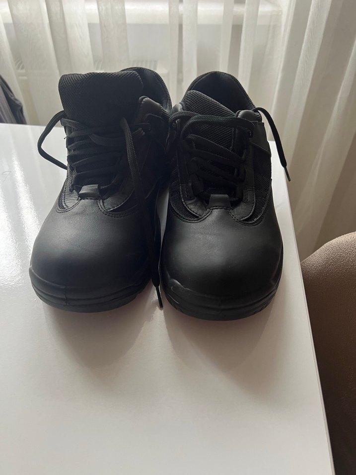 Siyah Hakiki Deri malzemeden yapılmış, bağcıklı tasarıma sahip erkek ayakkabısı. Düz, desen içermeyen gotik tarzda, koyu renklidir. Sıfır hiç kullanılmadı.