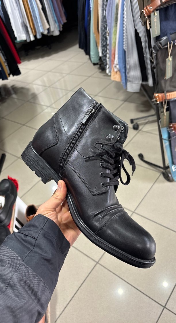 Erkek Siyah Deri Bağcıklı Biker Bot