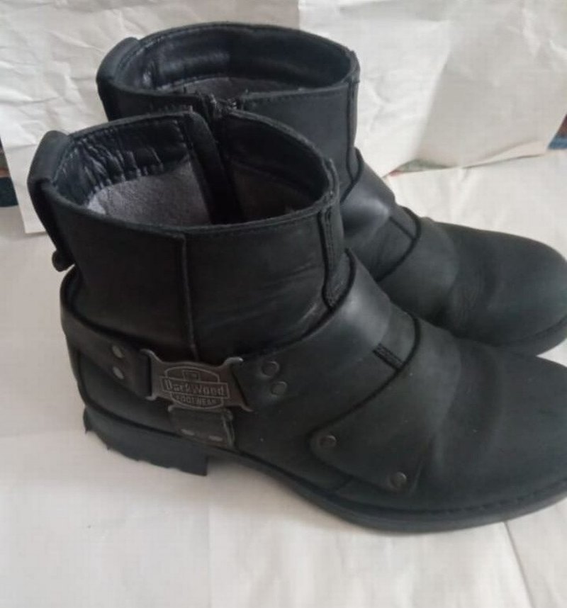 Siyah deri, tokalı biker botlar. Günlük kullanıma uygun, desen içermeyen, rock punk tarzına uygun sağlam tasarım.